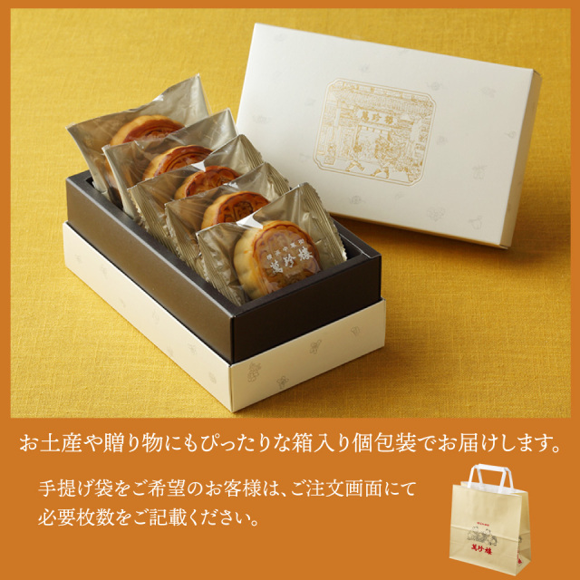 黒あんと黒ごまを包み込んだなめらかな口あたりが魅力の黒胡麻月餅をセットにしました。