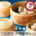豚肉、えび、椎茸筍の3種類の焼売と、人気の中華饅頭「肉まん 醤油味」「黒胡麻餡まん」のセットです。