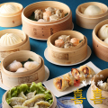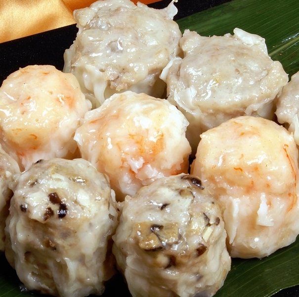 豚肉、えび、椎茸筍の3種類の焼売と、4種類の中華まん、ふかひれや海老の入った3種類の餃子の豪華な飲茶セットです。